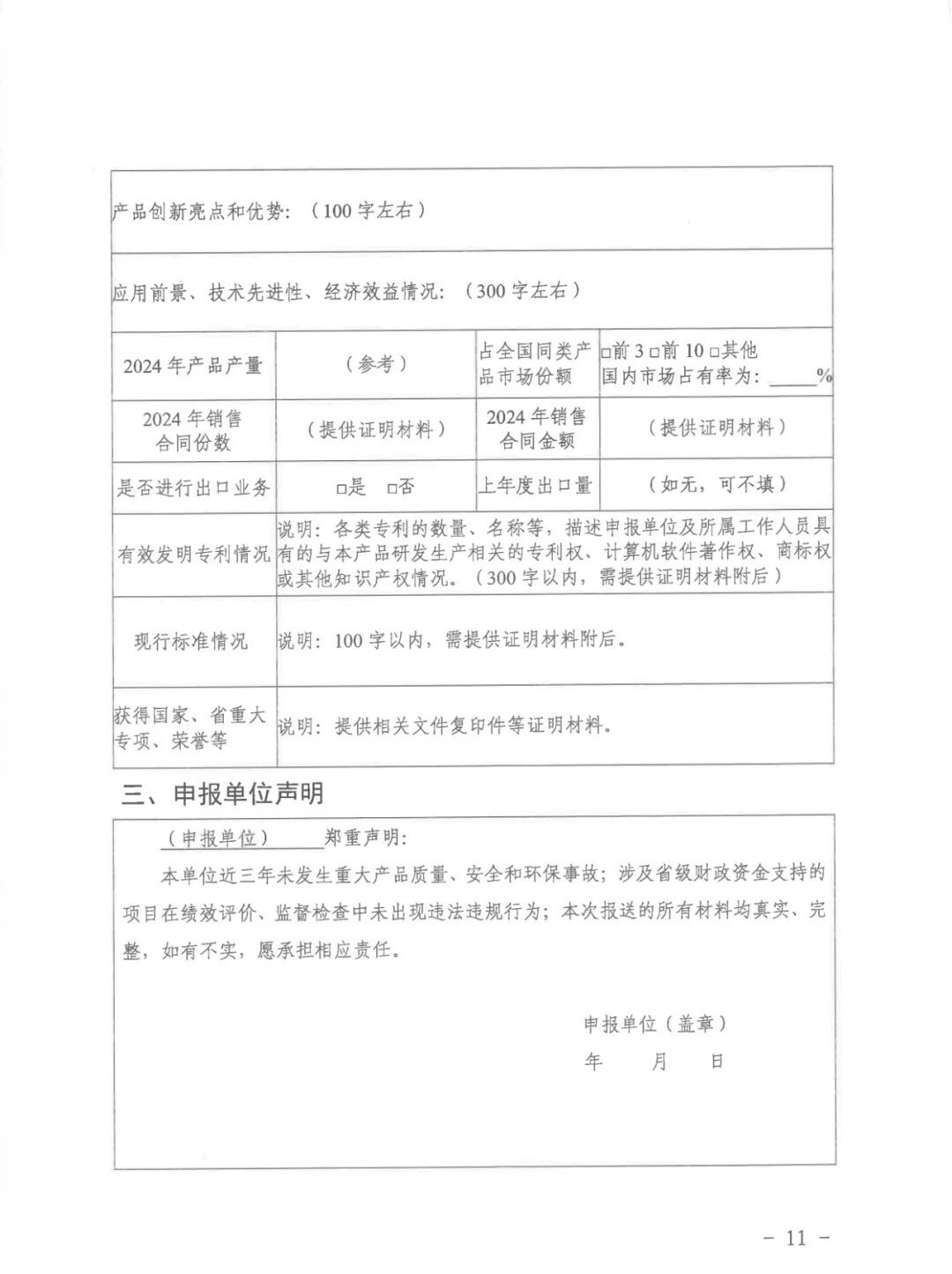 2.²úÆ·ÒªÇó¡£É걨²úÆ·ÇкϹú¶È²úÒµÕþ²ß£¬ÇкϹú¶ÈºÍÎÒÊ¡¶Ô²úÆ·³ö²ú¡¢ÏúÊÛµÄÓйػ®¶¨¼°ÌØÊâÒªÇó¡£ÊôÓÚ¹ú¶ÈÌØÊâÐÐÒµÖÎÀíµÄ²úÆ·£¬Ðë¾ß±¸ÓйØÐÐÒµÖ÷¹Ü²¿ÃÅÐû¸æµÄ²úÆ·³ö²úÐí¿ÉÖ¤£»ÊôÓÚ¹ú¶ÈÇ¿ÔìÐÔ²úÆ·ÈÏ֤Ŀ¼µÄ²úÆ·£¬Ðëͨ¹ýÇ¿ÔìÐÔÈÏÖ¤¡£É걨²úÆ·ÐèÌṩ¾ß±¸×ÊÖʵļìÑé»ú¹¹³ö¾ßµÄ¼ì²â»ã±¨»òÓû§ÑéÊջ㱨¡£